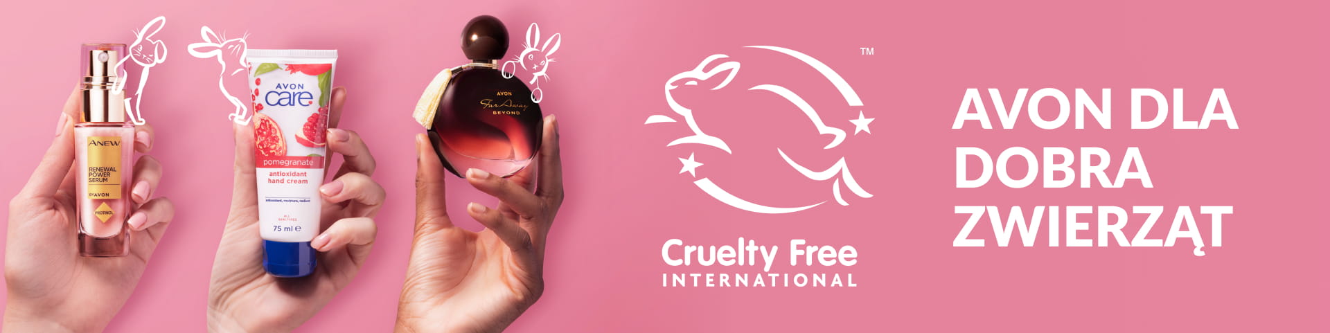 Po rygorystycznym i szczegółowym audycie całego naszego łańcucha dostaw, we współpracy z CFI, wszystkie zapachy Avon oraz kosmetyki z serii Avon Anew i Avon Care zostały zatwierdzone w programie Leaping Bunny.